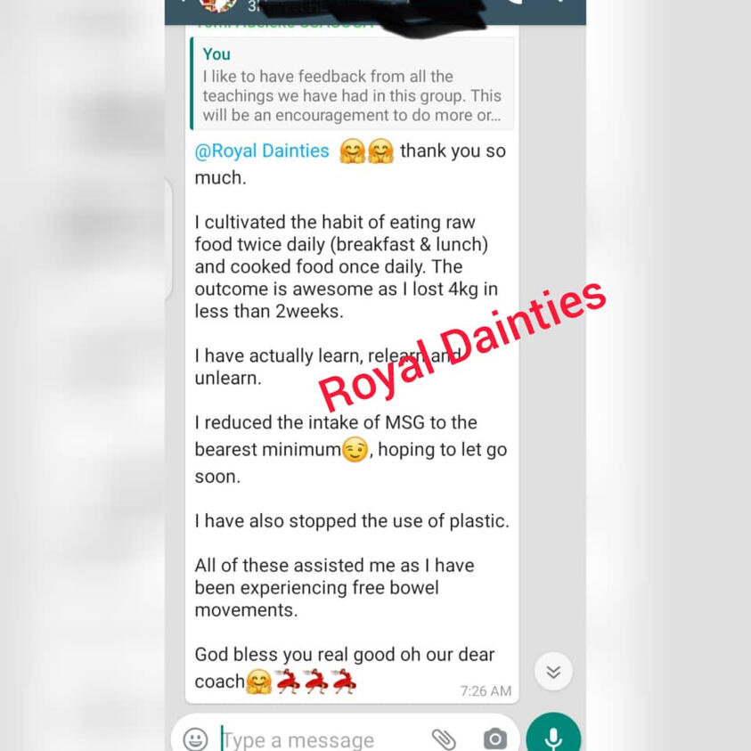 Wunmi Seun-Akintunde is a Nutrition and Wellness Coach who is passionate about healthy living. She teaches and trains people on dietary and lifestyle adjustments for a healthy body.She is on a mission to educate and share the gospel of wellness to all and sundry showing them that Food is medicine. She is a firm believer that your foods should be your medicine.She is a Healthy Living Ambassador from the Prestigious Rapha Institute of Healthy Living located in Lagos State Nigeria.She has had the opportunity to teach healthy living on different platforms both online and offline and has served in medical outreaches providing nutritional recommendations.Her teachings have helped many of her followers change their diet and lifestyle and in turn enjoy robust health.She is the MD/CEO of Royal Dainties which focuses on the provision of fresh fruit juices, smoothies, drinks, meals and distribution of organic foods whose aim and objective is to feed the nations with healthy foods.She has written some amazing books on wellness.You can connect with her and her works via:https://selar.co/m/RoyalDaintiesFacebook - https://www.facebook.com/ibiwunmi.seunakintundehttps://www.facebook.com/royaldaintiesconsult/